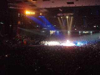 Ob 3h se s sestrično in njenim možem odpravmo iz Graza na Dunaj. V predmestju pustimo avto, sedemo na U-bahn, ki nas pripelje točno pred Stadthalle. Ura je bla pol 6, koncert se začne ob pol 8, torej se mi odpravimo lepo na pijačo (mel smo sedežne karte). =)